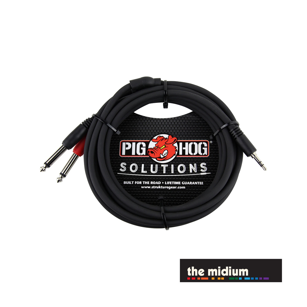 Pig Hog's description of the Pig Hog Solutions PB-S3410 - Stereo Breakout Cable, 3.5mm to Dual 1/4" - 10' (10 ft.)